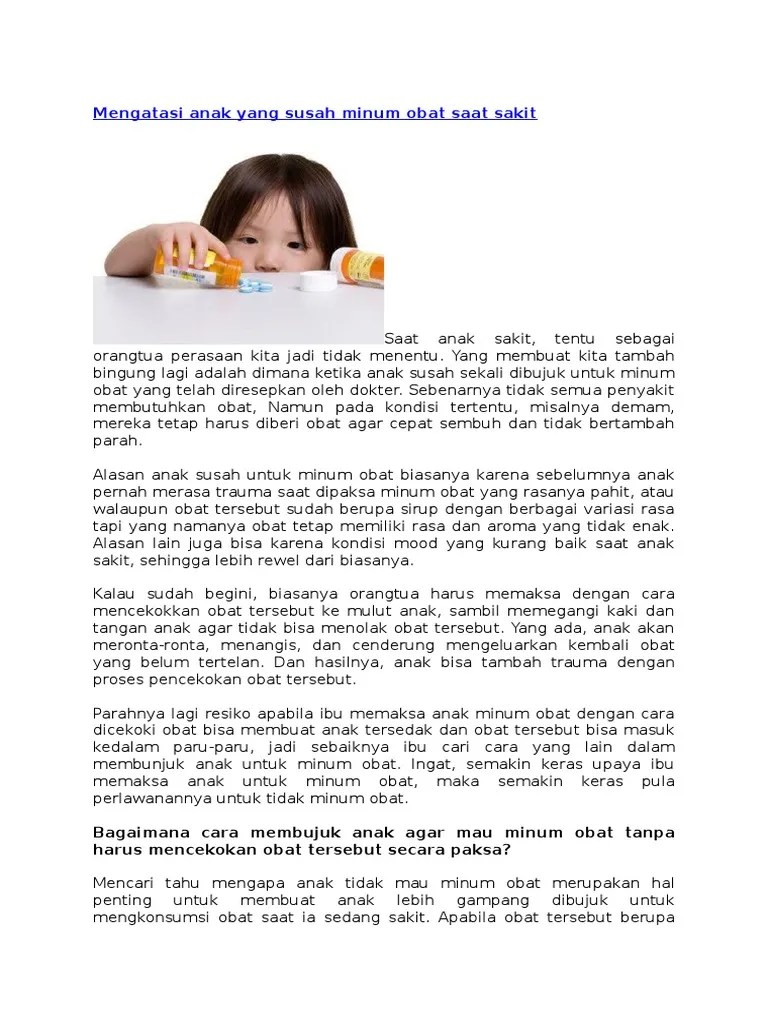 Tapi, jika anak demam dengan kondisi . Tips agar anak mau minum obat · 1. Antibiotik yang diberikan oleh dokter yang memeriksa anak anda . Hal itu bisa dilakukan sampai suhu turun dengan sendirinya dan tidak perlu diberikan obat penurun panas. Kulum es batu sebelum memberi obat.